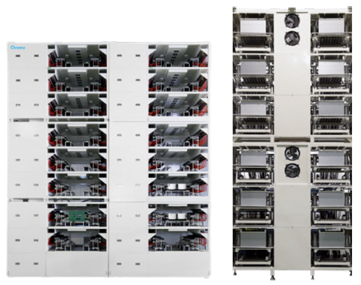 在活化制程前后会有仓储静置的程序,依据工艺差别分为常温仓储与高温仓储,因为静置时间长而仓储数量庞大,通常会以系统取代人员管理,有场地利用率高、避免人为错误、减少制程差异、管制纪录详实与大幅提高效率的优点,Chroma提供高速安静的无人搬运车和专业的自动化仓储管理系统。