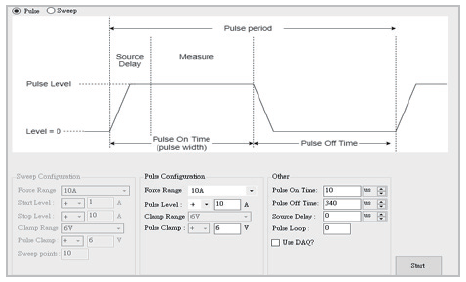 52403P短脉冲SMU具有出色的输高输出转换率和高输出电流Pulser模块,可以输出优异的10A大电流10uS脉冲或是1A电流5uS脉冲。此外,影响电流脉冲上升时间和下降时间的一个主要关键因素是电感。 52403P短脉冲SMU允许来自测试线材和被测物的电感高达3uH,并且仍然能够提供出色的的10A大电流10uS脉冲或是1A电流5uS脉冲。