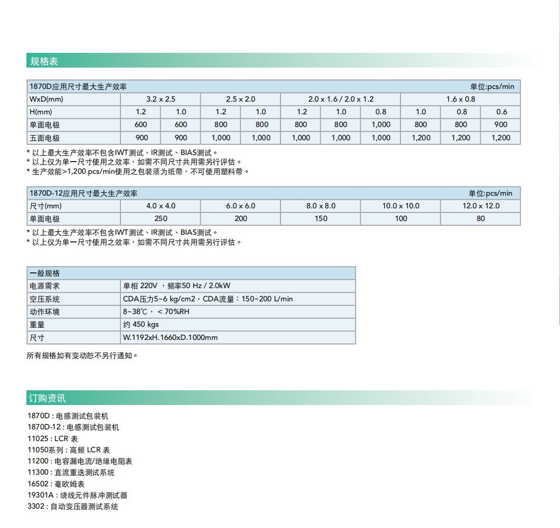 Chroma 1870D系列(1870D/1870D-12)是一款为晶片型电感所设计的自动化测试生产设备,包含晶片电感所需的各项测试功能,并具备制程终端的卷带包装自动化机械,达到生产线的制造自动化。