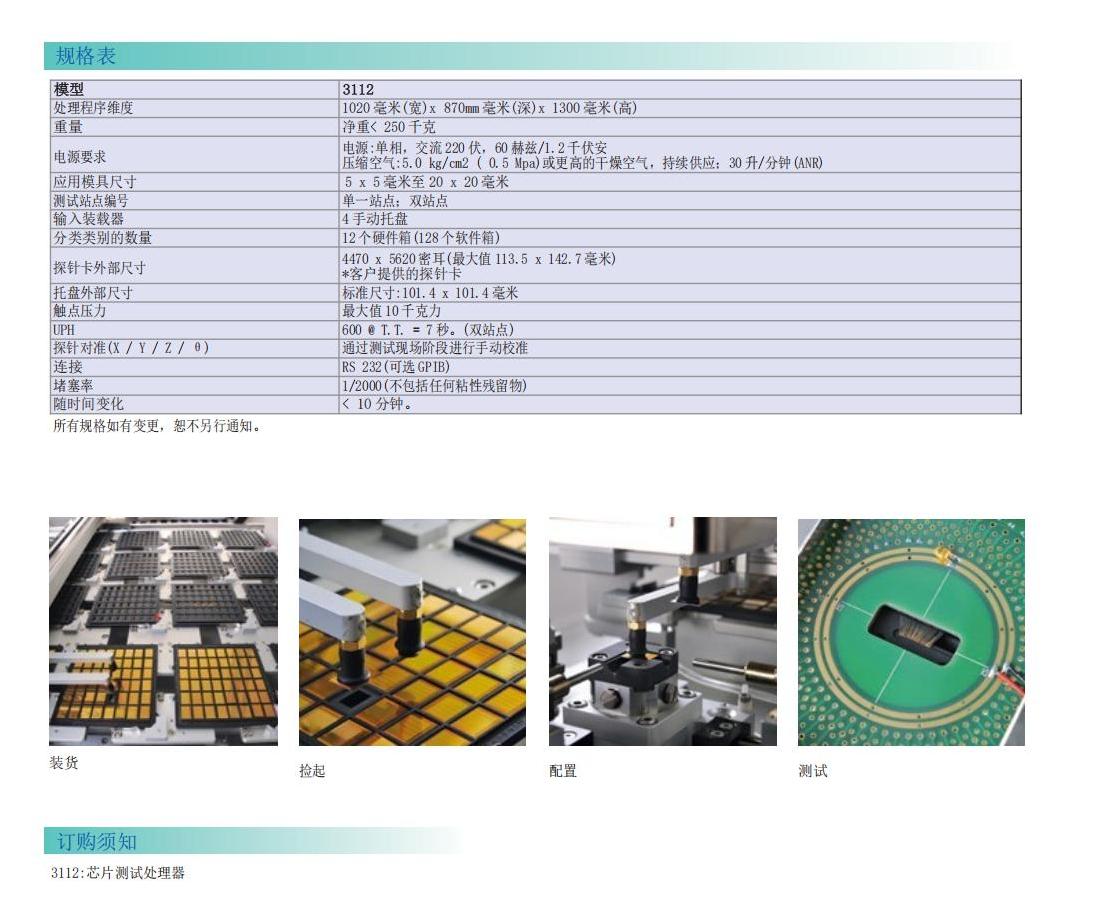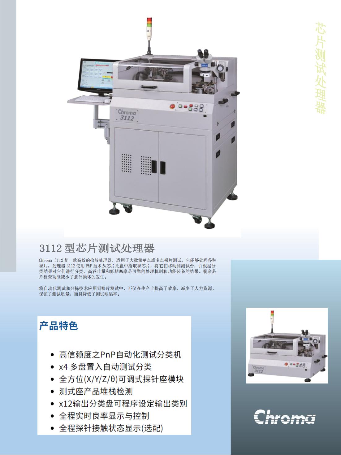 Chroma 3112是一款高效的拾放处理器,适用于大批量单点或多点裸片测试。